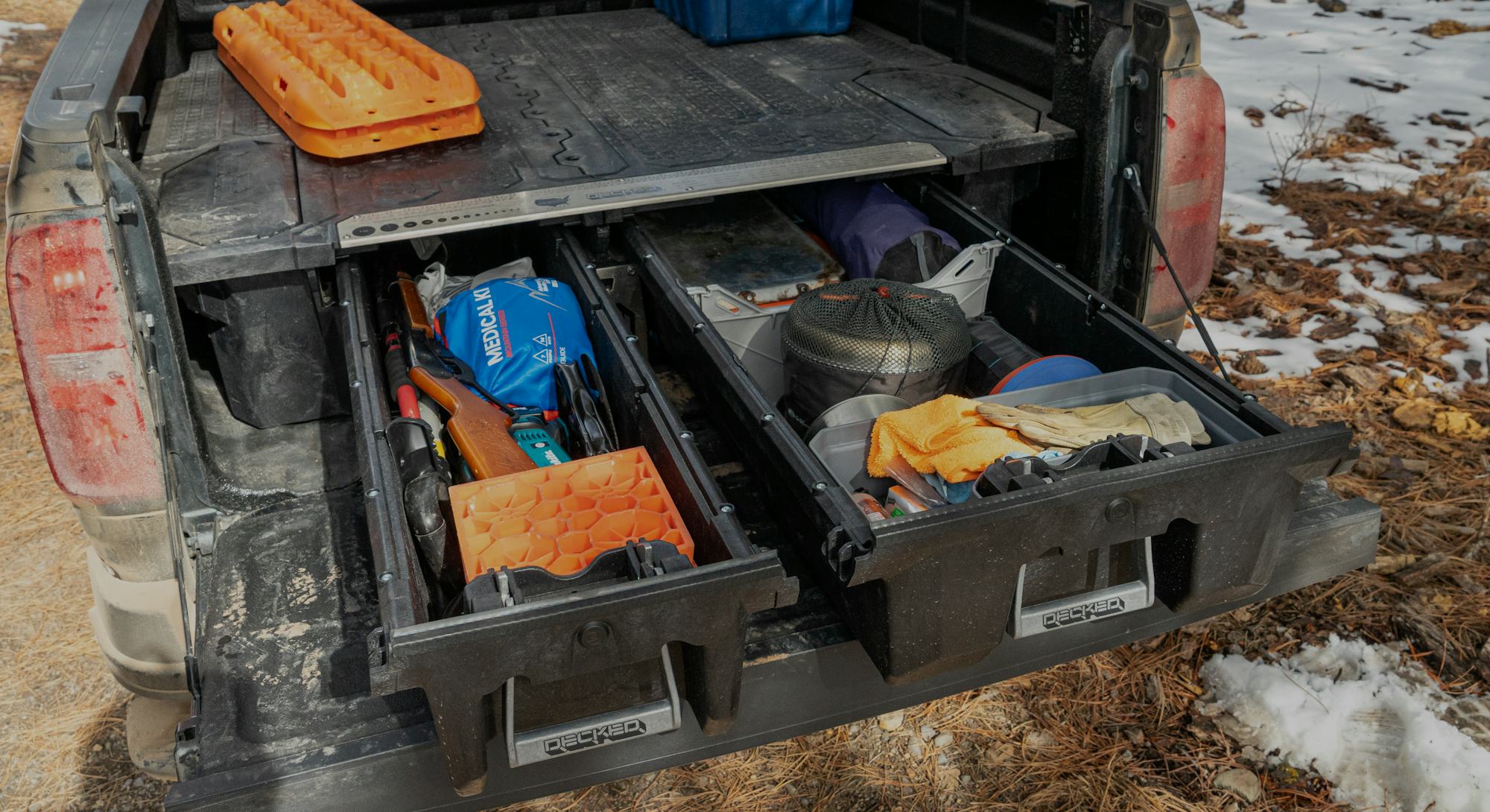 Recently another GearJunkie. The Decked system 149999 puts two giant drawers and a few other storage nooks and crannies into your truck bed allowing you to organize and have easy access to basically anything you plan to carry but without losing most of the beds original functionality. I put a topper over the bed and drawers and I havent looked back.